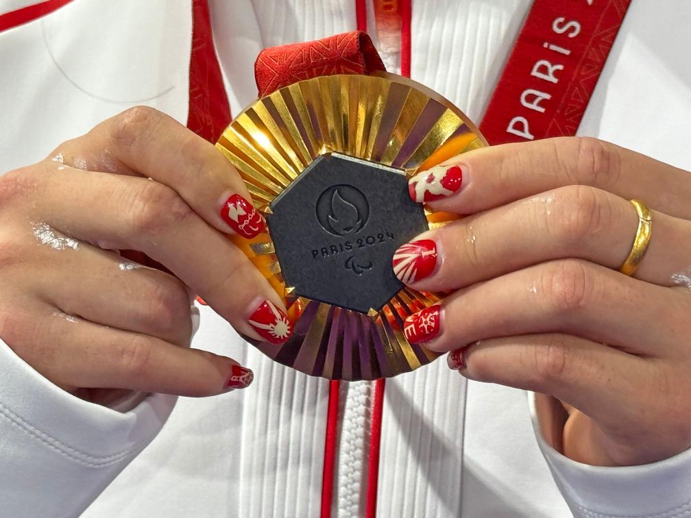 “无臂美人鱼”卢冬也在出发前定制了美甲。除了国旗、金牌、残奥会会徽,她右脚大脚趾的蓝色格外引人注目,这是她的幸运色,也是池水的颜色,对于这个爱打游戏,段位颇高的姑娘来说,蓝色还代表着游戏里提高战斗力的“buff”。在自己的第四届残奥会,她收获4金1银的成绩。