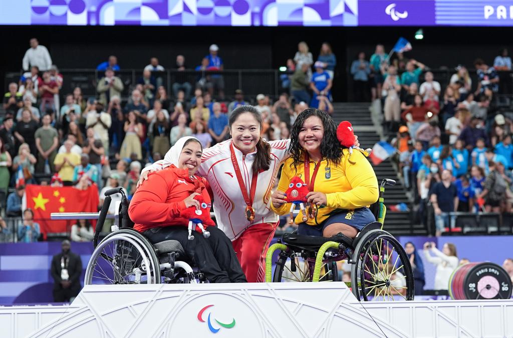 同在举重赛场,女子67公斤级比赛中,里约、东京两届残奥会金牌得主谭玉娇接连打破世界纪录。在夺冠后,她亲吻了亚军埃及选手埃利安和季军巴西选手卡斯特罗的脸颊。