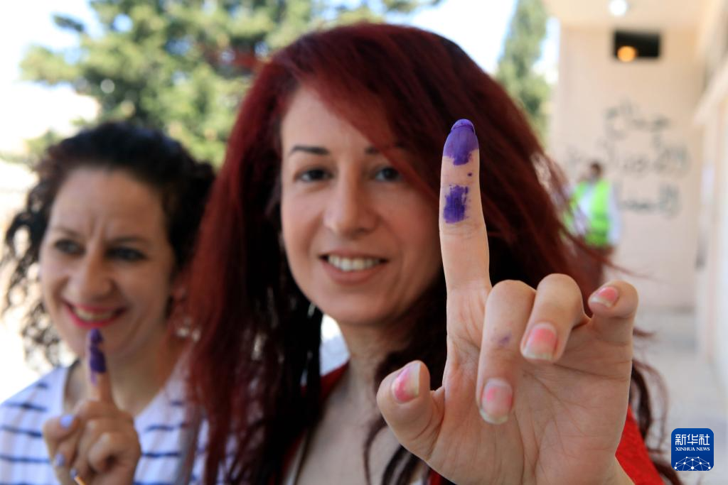 9月10日,在约旦拜勒加省,选民参加国民议会选举投票后展示蘸有墨水的手指。新华社发(默罕默德·阿布·古什摄)