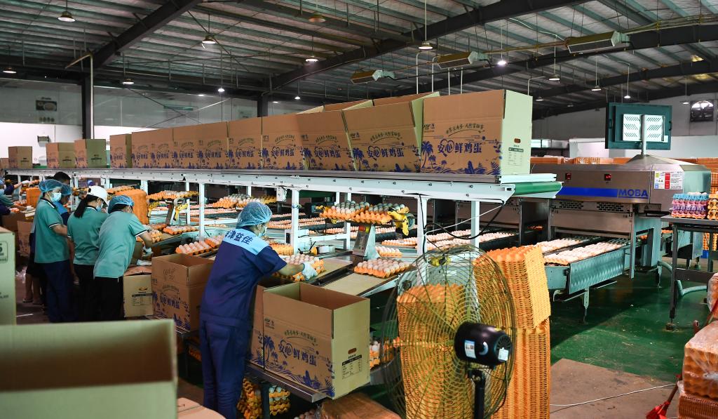 海津益佳公司工人在打包鸡蛋。新华社记者杨冠宇 摄