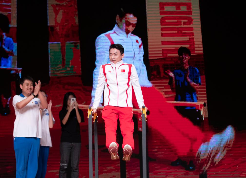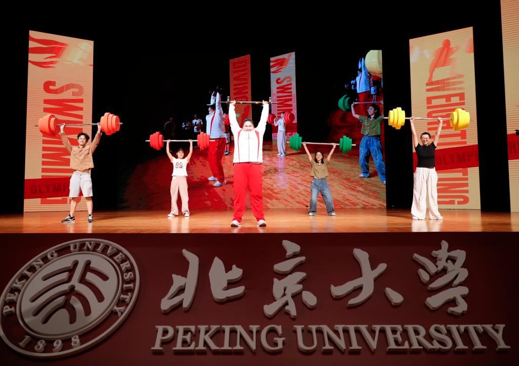 巴黎奥运会上,曹缘、李雯雯、邹敬园均夺得金牌,张雨霏则以1银5铜的战绩将中国游泳运动员的个人奥运奖牌数纪录提升到10枚。北大现场热烈的氛围让张雨霏想到了巴黎奥运会女子100米蝶泳决赛。“颁奖仪式结束后,我看到观众席上一面面五星红旗,就像是在这里看到大家一样。有观众不断地挥手说,‘张雨霏加油,张雨霏你最棒了’,我的泪水夺眶而出。大家对我的鼓励和支持,让我再次深切地感受到我不是一个人,我身后有祖国的人民和你们,我知道我的努力都被看见。”