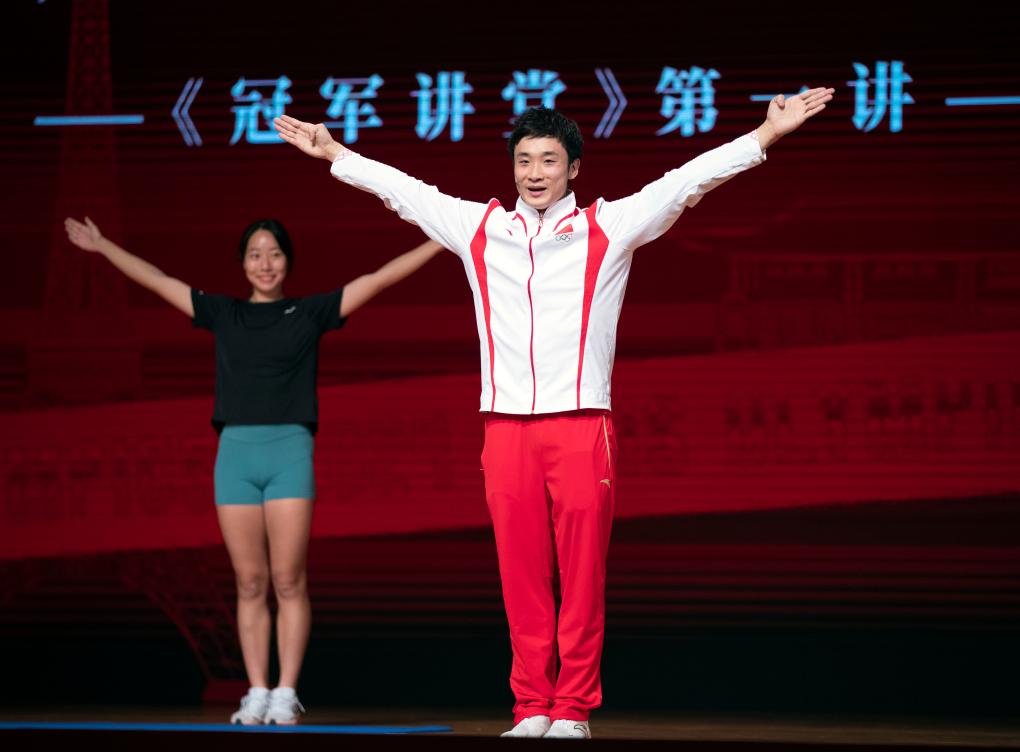 9月19日,张雨霏在“冠军讲堂”发言。新华社记者 雒圆 摄