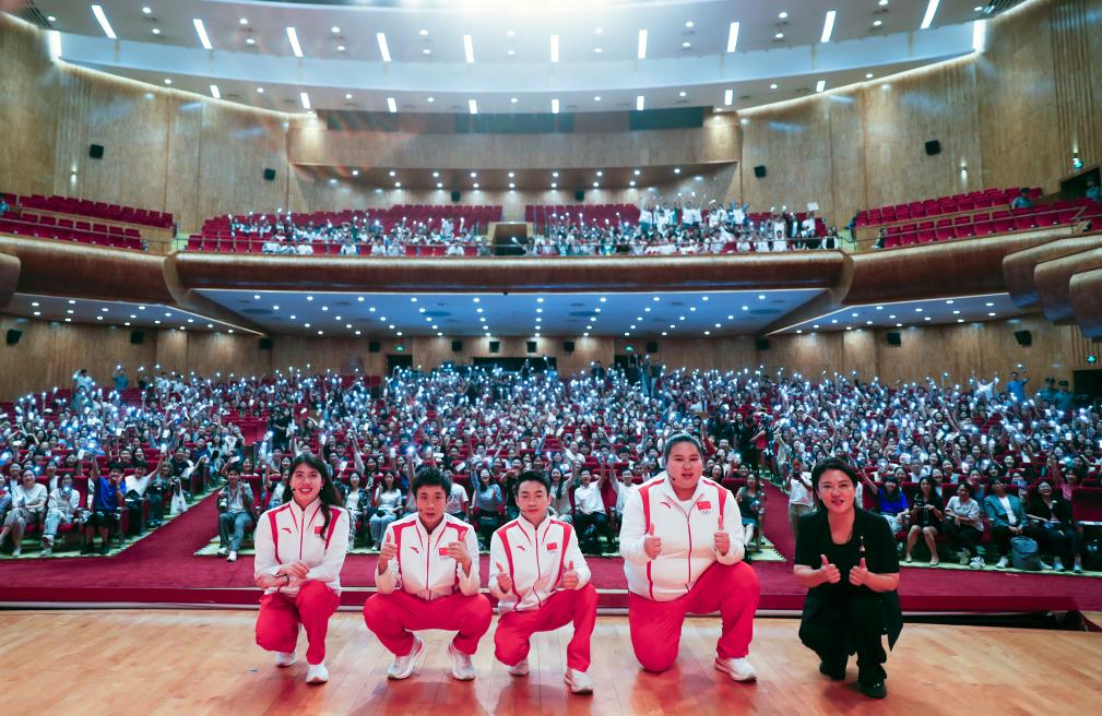 新华社北京9月19日电(记者郁思辉)北京大学新学期《冠军讲堂》19日开讲,主讲人、奥运冠军张雨霏、曹缘、李雯雯、邹敬园现身北大百周年纪念讲堂。四位冠军分享了自己在奥运之路上的感悟,并与学生们交流互动,现场一片欢腾。