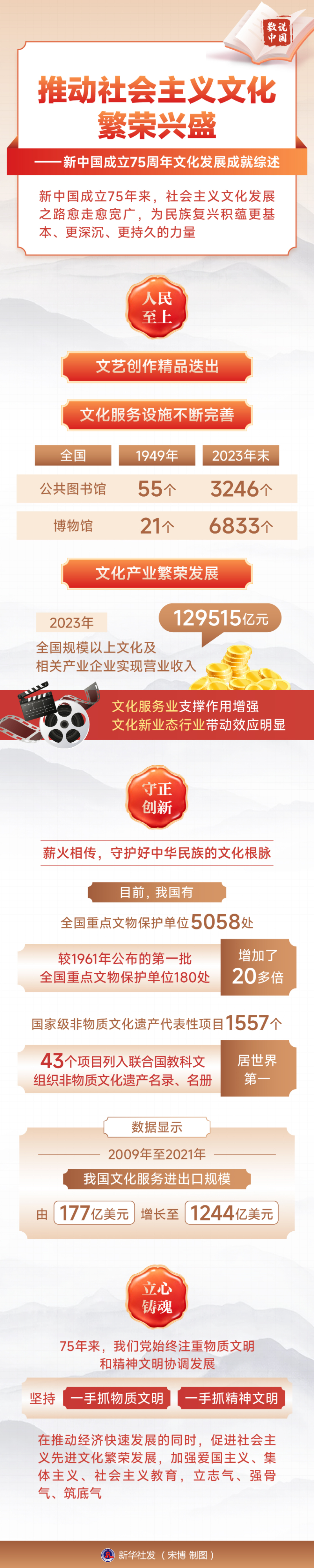 新中国成立75年来,社会主义文化发展之路愈走愈宽广,为民族复兴积蕴更基本、更深沉、更持久的力量。