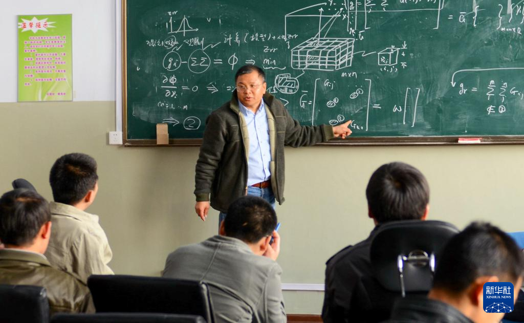 黄大年为吉林大学的学生们授课(2011年4月10日摄)。 新华社发