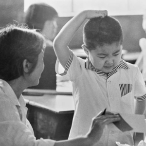 1981年7月,在北京崇文区光明小学,新生在参加招生入学考试。新华社记者 黄景达 摄