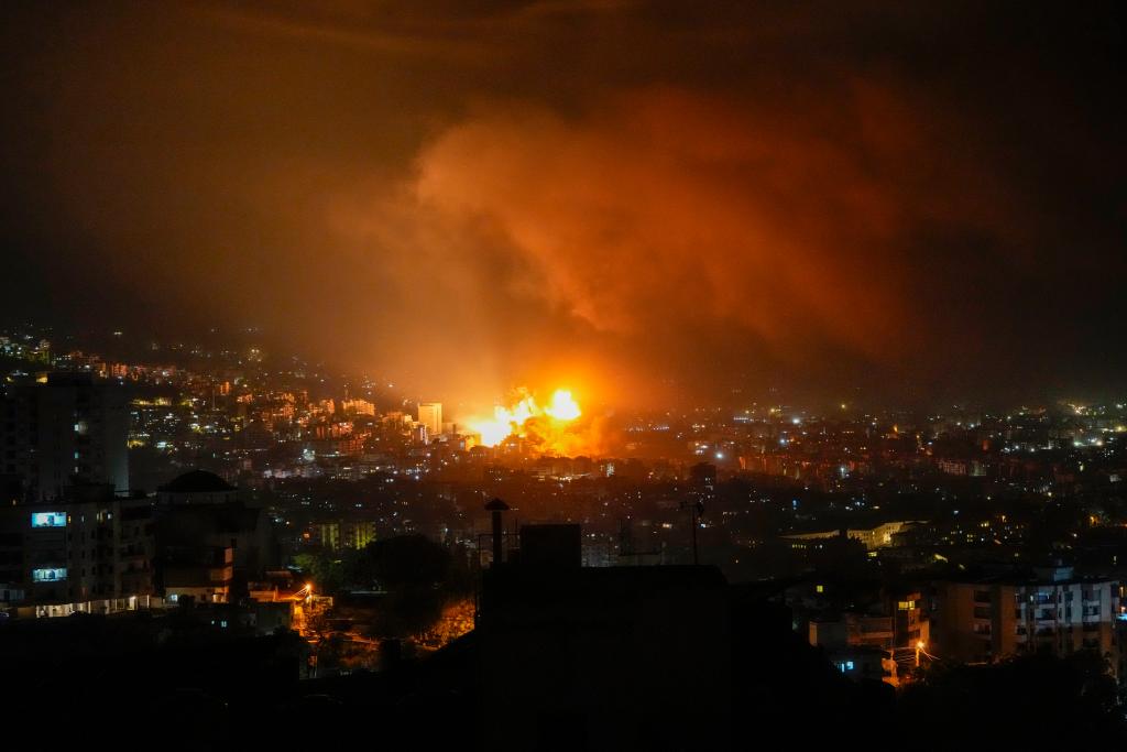 2024年9月28日凌晨拍摄的以军轰炸黎巴嫩首都贝鲁特南郊后产生的浓烟。新华社/美联
