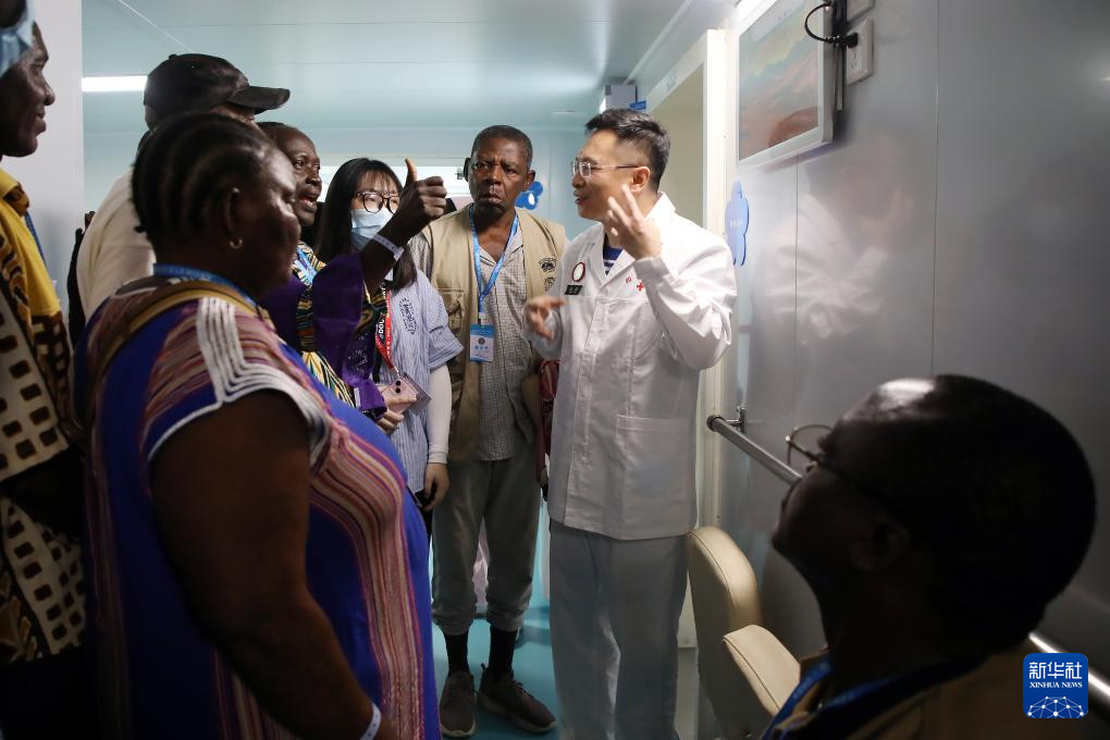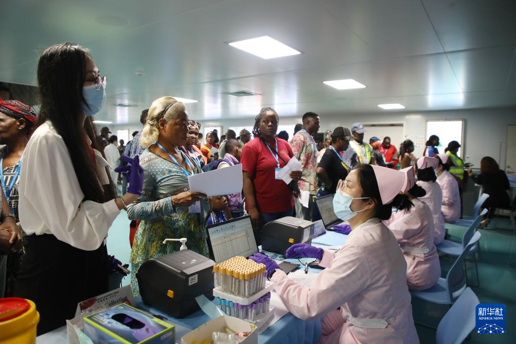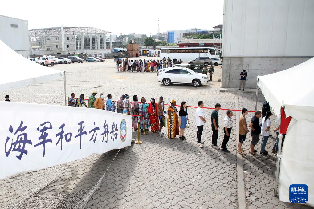10月9日,中国海军“和平方舟”号医院船在喀麦隆开展医疗服务。新华社发(刘志磊摄)