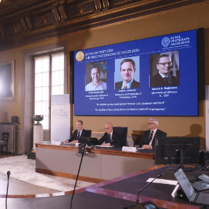 新华社斯德哥尔摩10月14日电(记者张玉亮 陈静)瑞典皇家科学院14日在斯德哥尔摩宣布,将2024年诺贝尔经济学奖授予三位来自美国大学的经济学家达龙·阿杰姆奥卢、西蒙·约翰逊和詹姆斯·鲁滨逊,以表彰他们在关于制度如何形成并影响经济繁荣研究领域的突出贡献。