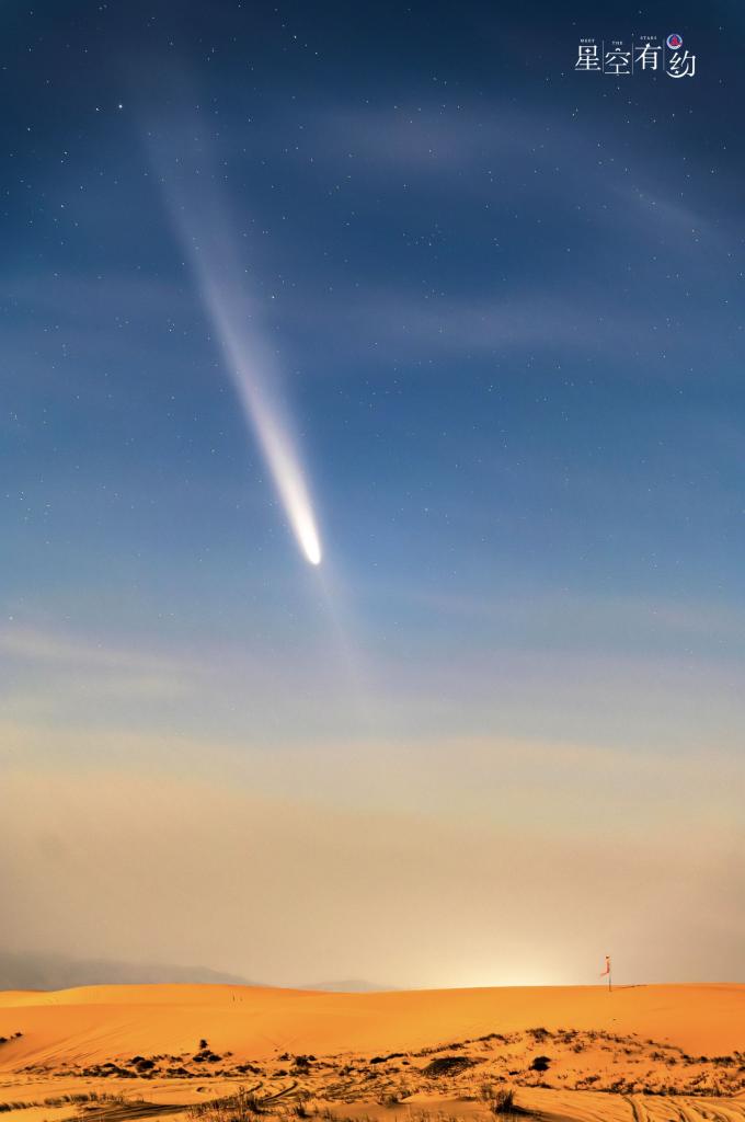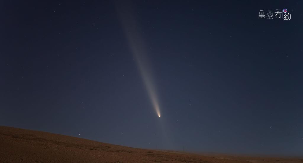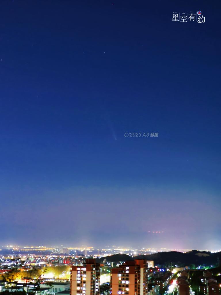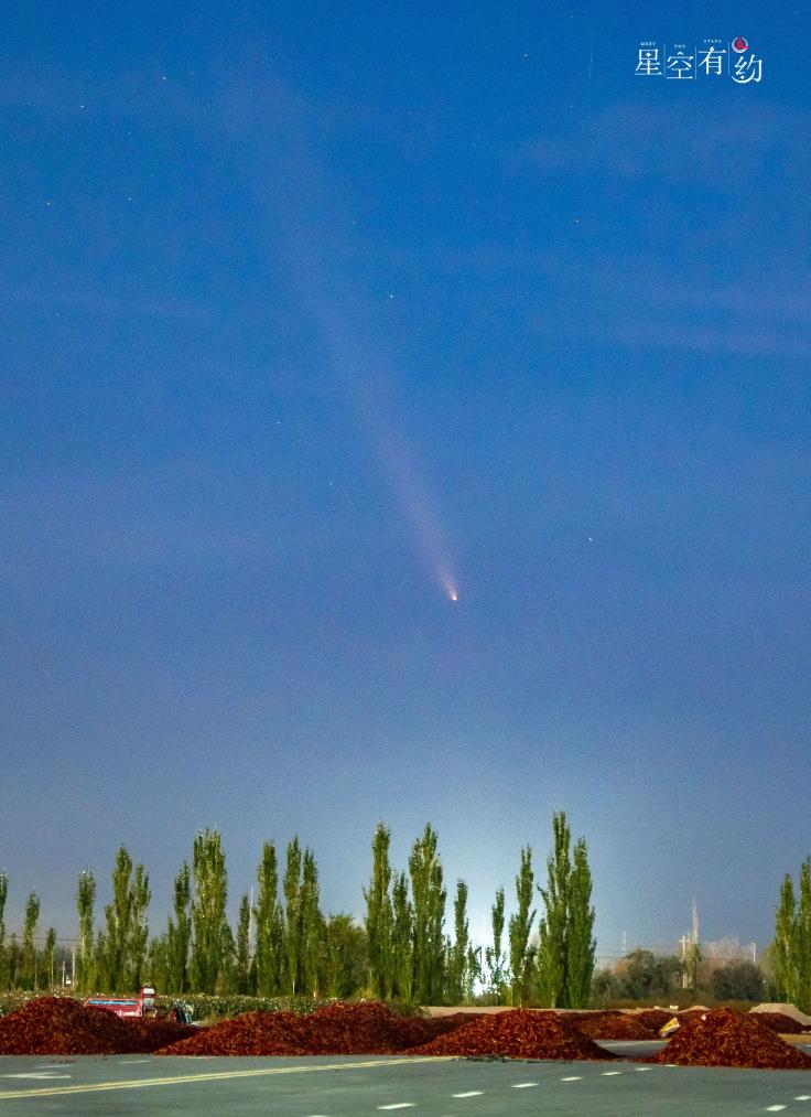 如何在茫茫天宇找到这位“天外来客”的身影?蒋晨明说,最近一段时间,日落后不久,这颗彗星都会准时出现在西方偏南的夜空。时间越往后,这颗彗星的移动方向越靠南,地平高度也会越来越高,但同时亮度也会变差。如果天气晴好,感兴趣的公众可以择机寻找一处无灯光影响且视野开阔的场所,用肉眼或借助相机、双筒望远镜、小型天文望远镜耐心地寻找,就有机会发现它的身影。