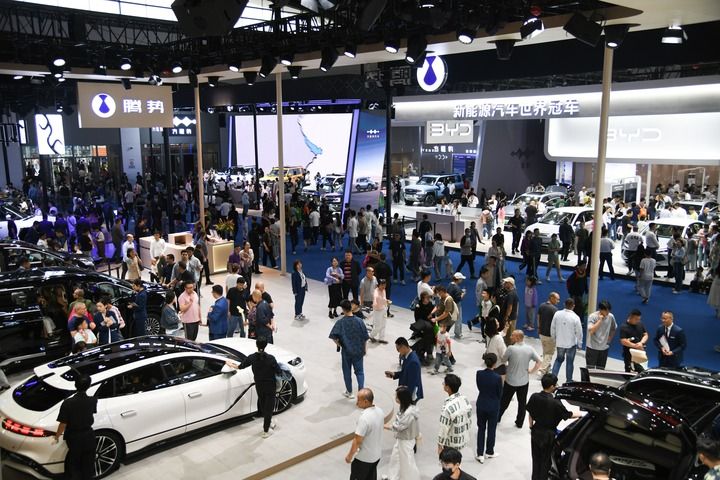 2024年10月1日,参观者在2024第十九届西安国际车展参观新能源汽车。新华社记者 张博文 摄