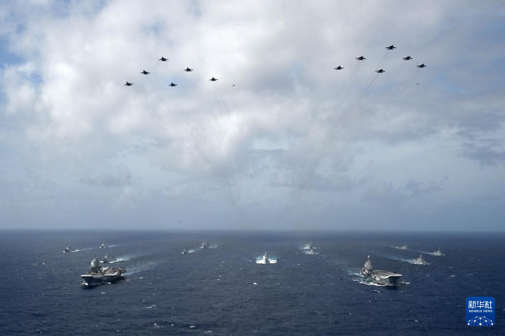10月下旬,海军辽宁舰编队开展远海实战化训练。期间,辽宁舰、山东舰编队首次开展双航母编队演练。新华社发(陈梦曦 摄)