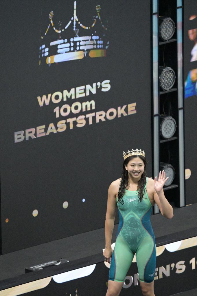 覃海洋以25秒47的成绩在男子50米蛙泳中夺冠,保持三站全胜;唐钱婷在女子100米蛙泳中以1分03秒10获胜,她在前两站比赛中是50米和100米蛙泳的双金得主,2日将进行50米蛙泳的角逐。