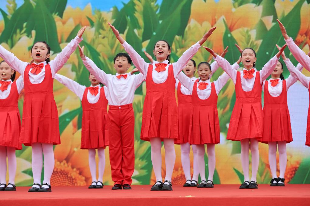 2024年10月22日,少年儿童在活动启动仪式上表演。(国家民委供图)