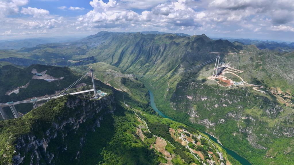 建设中的花江峡谷大桥(2024年9月3日摄)。新华社记者欧东衢摄