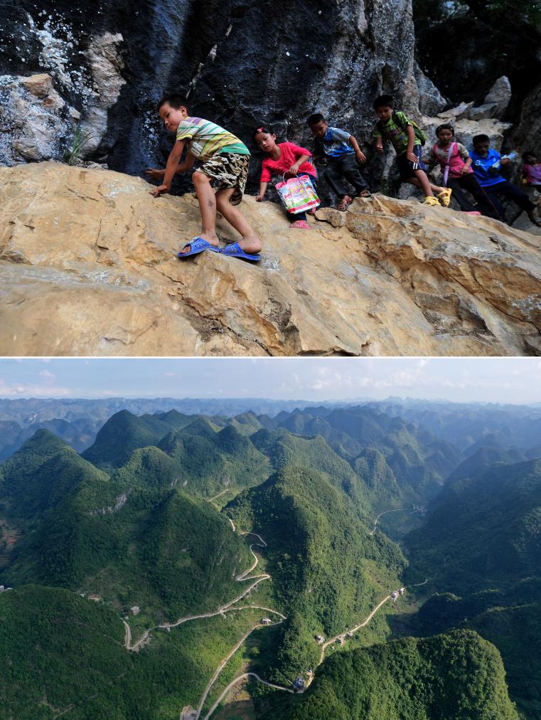 大化瑶族自治县西北部的板升乡、七百弄乡等乡镇是典型的喀斯特地貌,联合国粮农组织的官员到此考察后,给出了这里是除了沙漠以外最不适合人类居住地区的结论。十多年前,这里大多数的村屯都尚未通公路,很多学生要花费一两个小时,爬“天梯”,过悬崖,翻越大山抵达学校。