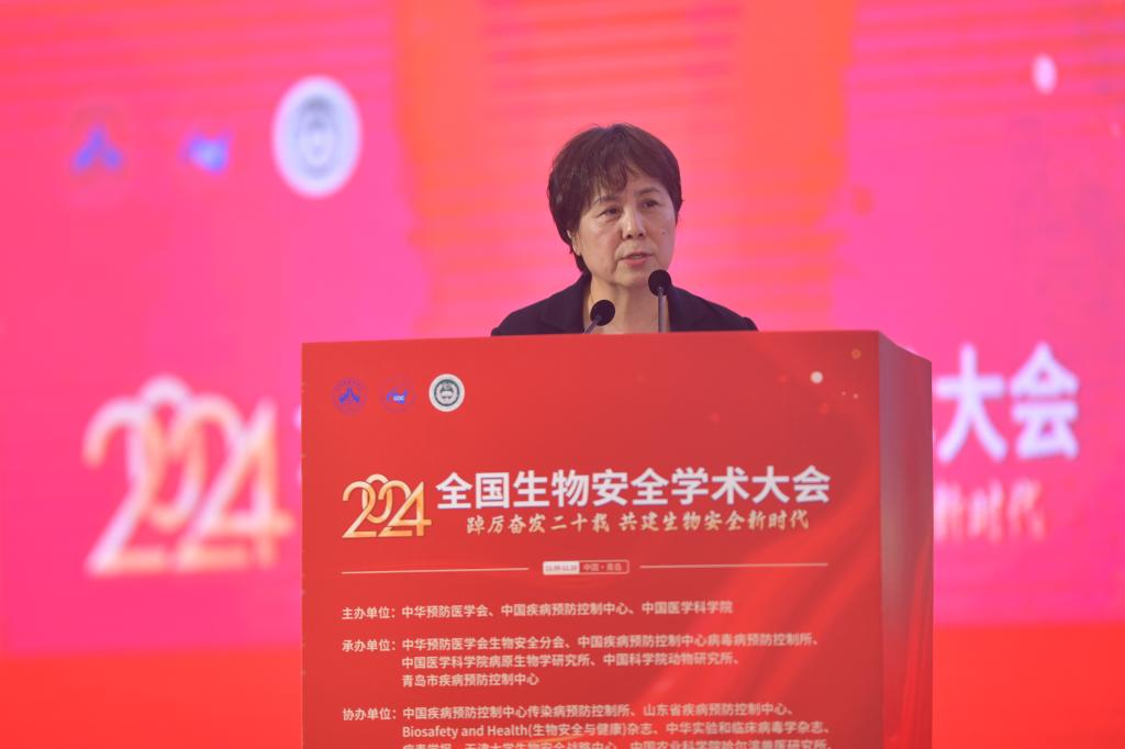 图为中华预防医学会生物安全分会主任委员、亚太生物安全协会主席武桂珍在大会致辞。(中华预防医学会生物安全分会供图)