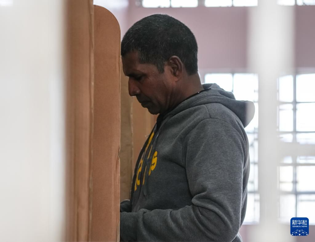 11月10日,选民在毛里求斯瓦科阿市的一处投票站参加投票。新华社记者 李亚辉 摄
