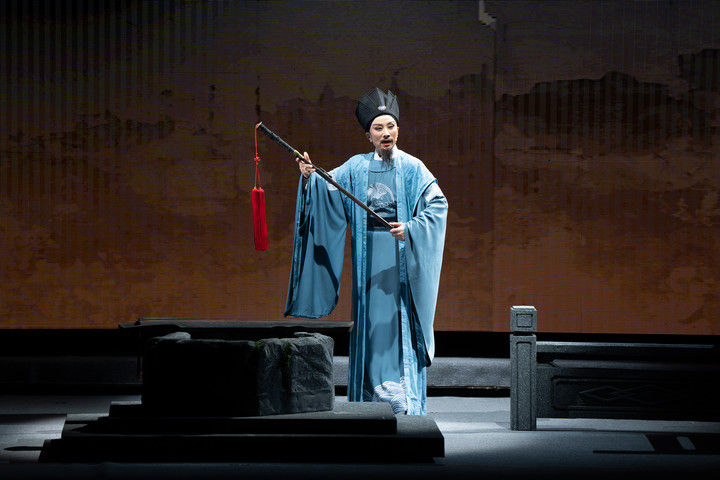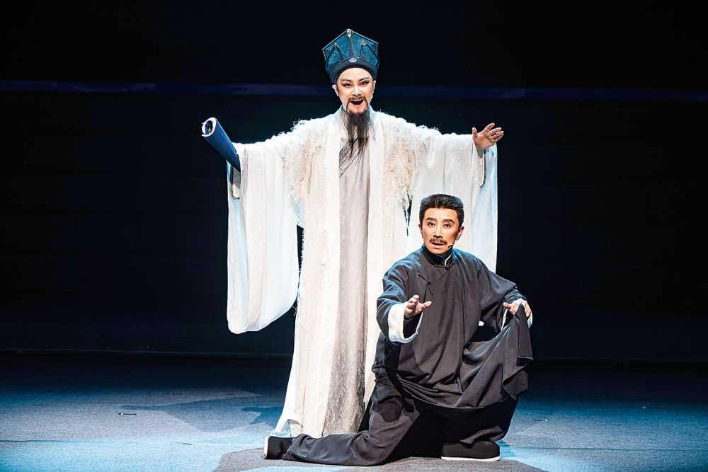 10种越剧流派汇聚其中,“早晨卖花的小姑娘都是一种”。四位绍兴师爷,边唱着传统绍兴莲花落,边用互联网的“梗”插科打诨,贯穿全剧。姚启圣唱的向海长歌,是越剧范派唱腔同蒙古长调做了结合,表演徐渭时的戏曲身段大量吸收了中国舞蹈的元素……