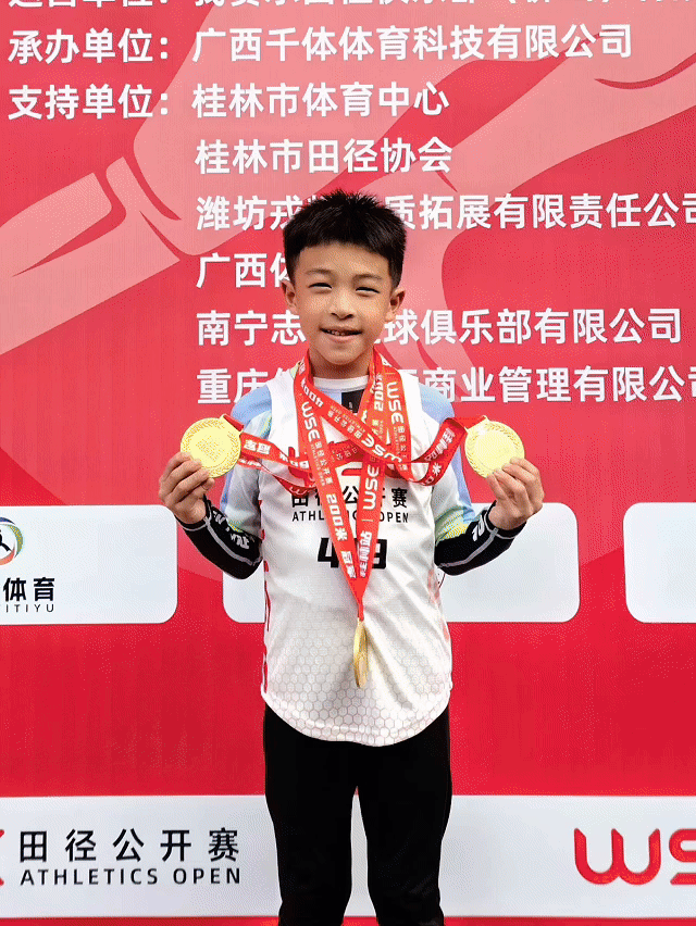 他此前还在跳绳等体育竞赛中斩获多枚金牌