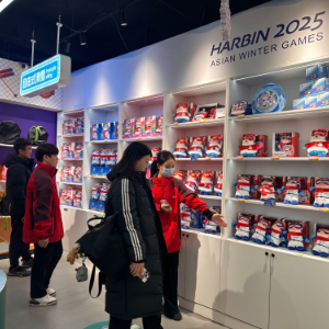 “随着亚冬会的临近,店里的顾客逐渐增多,大部分都是外省游客,大家对保暖产品很感兴趣,其他像徽章、纪念币、水杯等周边产品也受到欢迎。”零售店工作人员告诉记者。