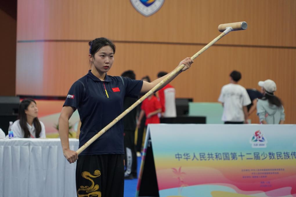 “父亲参加过四届全国少数民族传统体育运动会,一届作为运动员,三届作为教练员。我同父亲一样,无论是运动员还是教练员,都希望与大家交流学习,将民族武术传承好、展示好。”金红兰说。