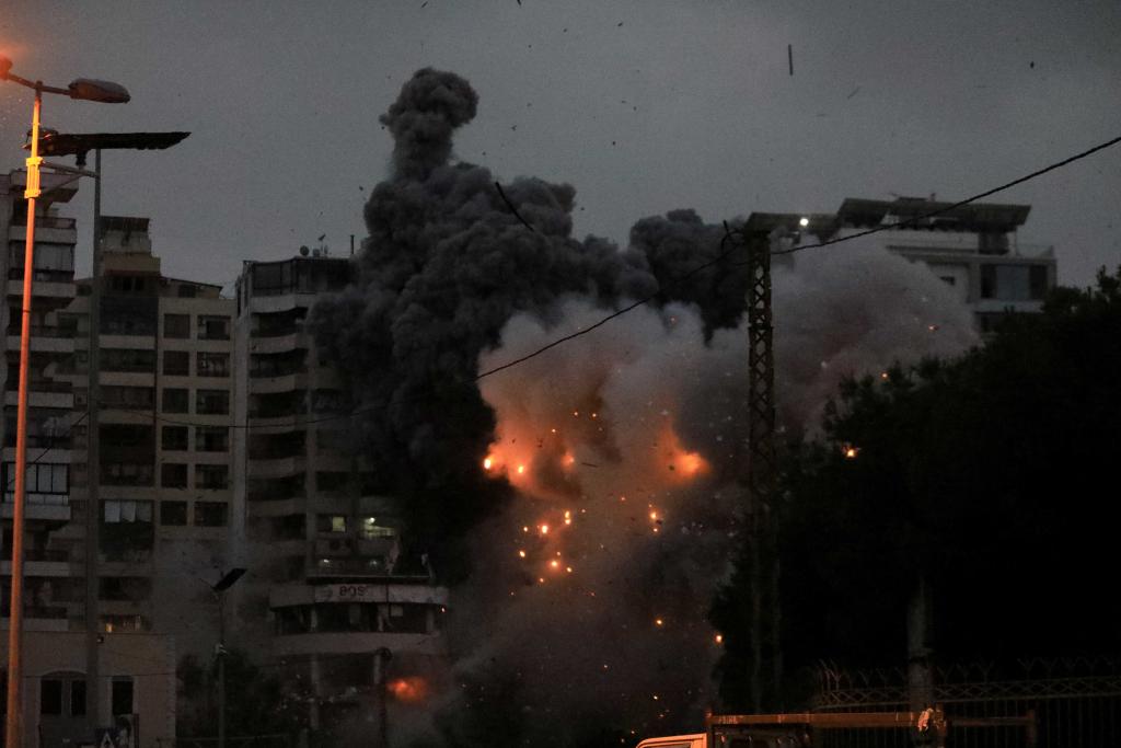 11月25日,在黎巴嫩首都贝鲁特南郊,以军空袭现场升起浓烟。新华社发