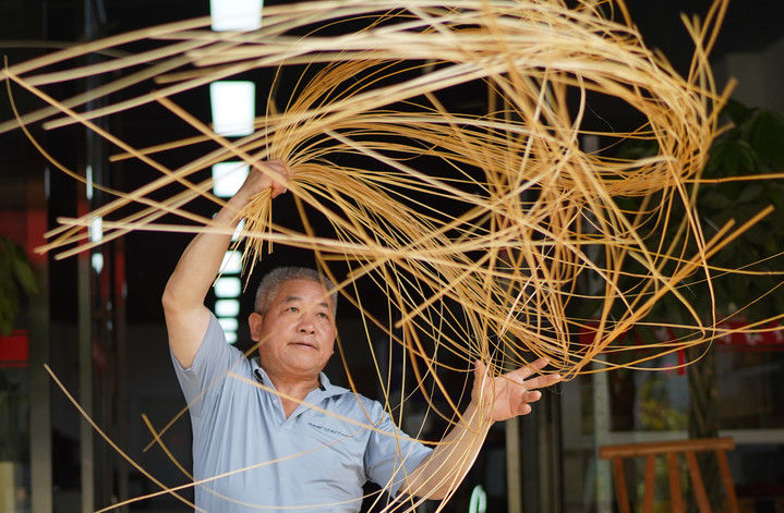 李年根在制作竹制品(9月2日摄)。新华社记者 周密 摄