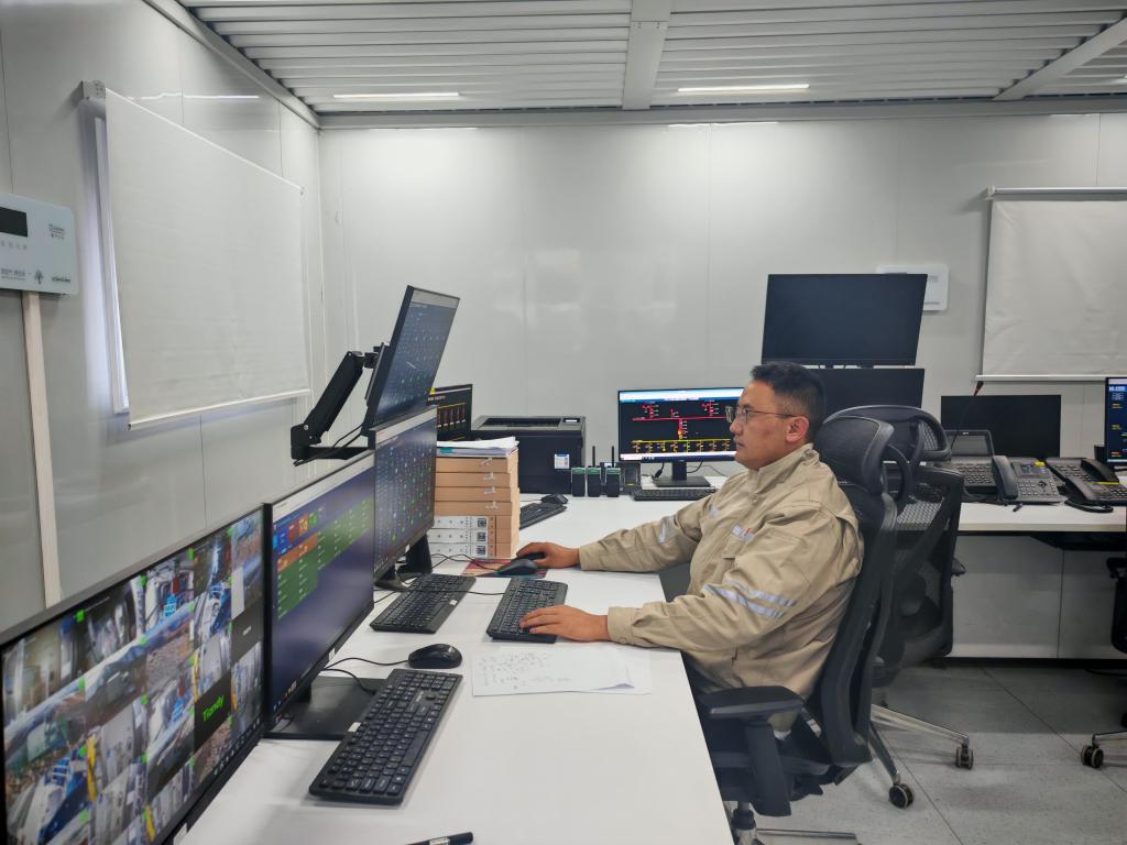在西藏八宿县,大唐八宿风电场运维技术员洛松泽仁在中控室监测风机运行情况。(任明乔 摄)