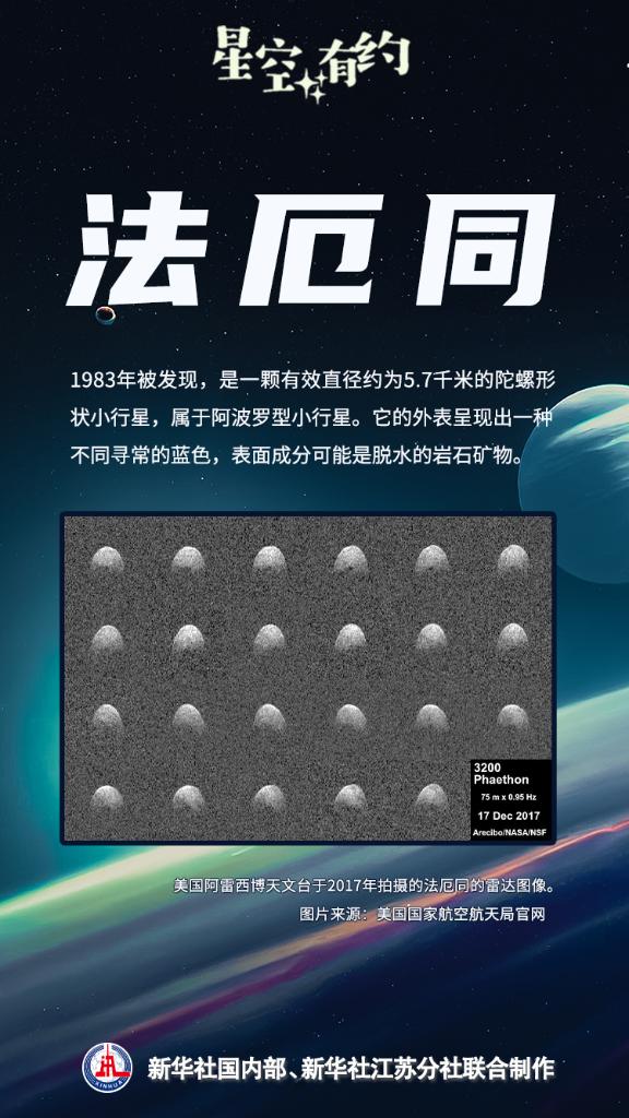 “法厄同的偏心率约为0.89,意味着它绕太阳公转的轨道是一个很扁的椭圆,这使得它的近日点距离太阳非常近,仅0.14个天文单位,比一般的小行星更接近太阳。”王科超说,当法厄同位于近日点时,它被太阳炙烤,从而使其具有活动性,在轨道上抛出尘埃。