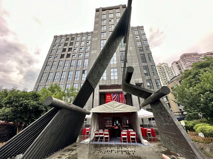 申新九厂原址上改建的上海纺织博物馆,门前矗立着纺车雕塑。新华每日电讯记者徐欧露摄