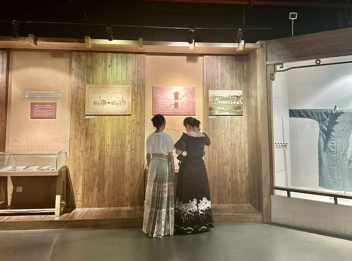 身穿马面裙的游客正在参观上海纺织博物馆。新华每日电讯记者徐欧露摄