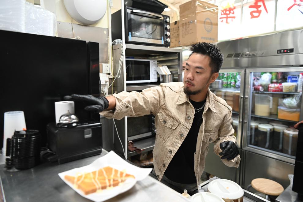 澳门青年、茶餐厅创始人邱志晖在店里店外忙个不停。他既能亲自下厨制作一份特色小吃“奶油多”,也会和顾客交流,倾听他们的意见,改进门店的餐品和服务。