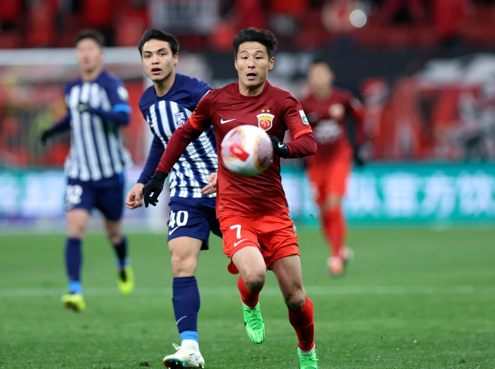 资料图:2024年3月1日,上海海港队球员武磊(右)在2024赛季中国足球协会超级联赛揭幕战中。新华社发(海沙尔摄)