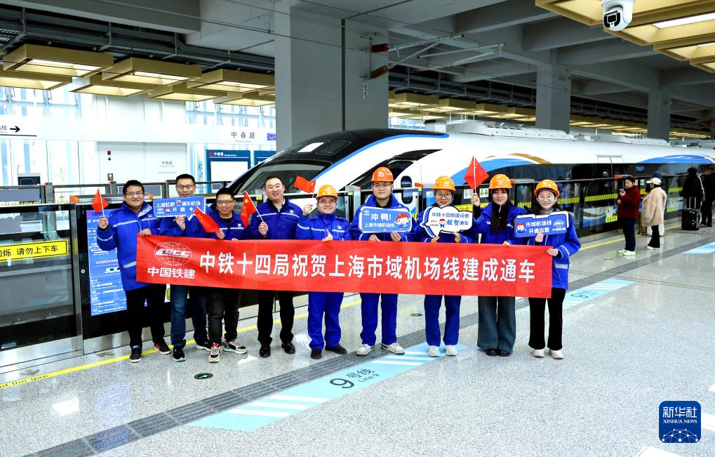 12月27日,中铁十四局的市域机场线建设者在通车活动上合影。