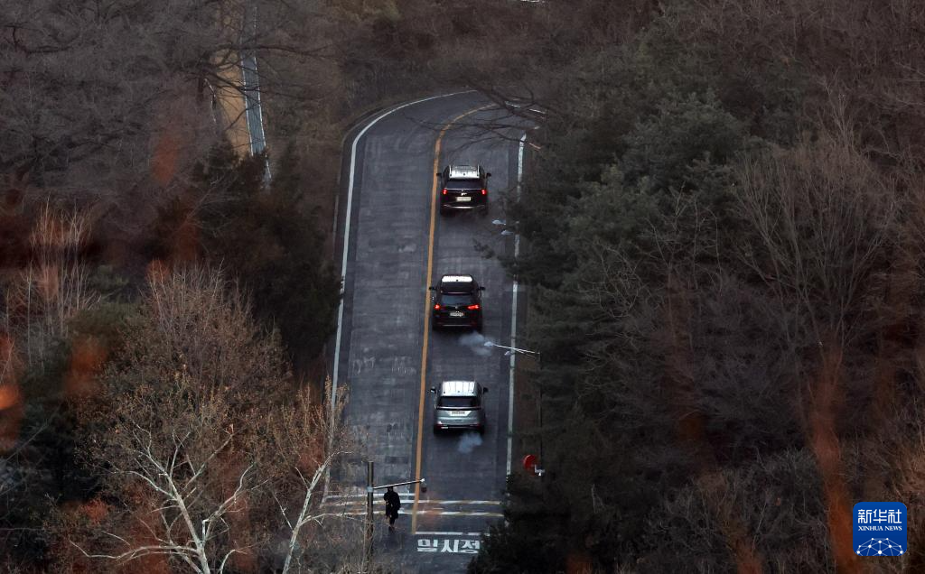 1月3日上午,韩国高级公职人员犯罪调查处工作人员乘坐的车辆驶向首尔龙山区汉南洞的总统官邸。新华社/纽西斯通讯社