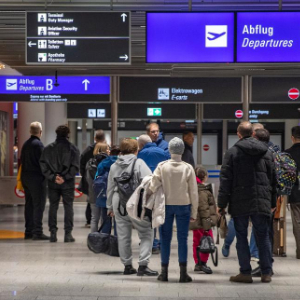 1月3日,人们聚集在德国法兰克福机场出发大厅。新华社记者 张帆 摄
