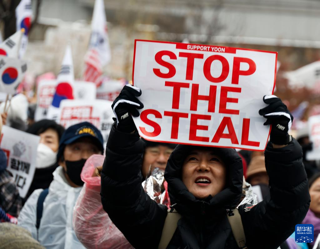 1月5日,尹锡悦支持者在位于韩国首尔的总统官邸附近参加集会反对逮捕总统尹锡悦。新华社发(全休相摄)