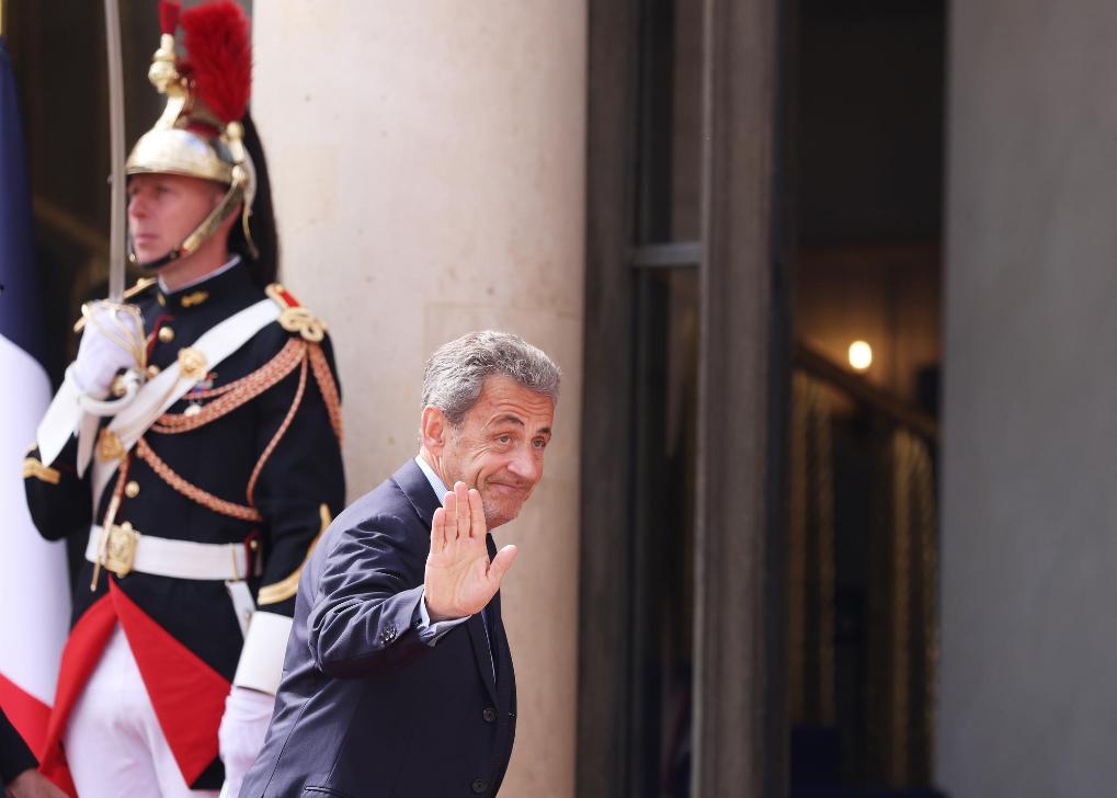 2022年5月7日,在法国巴黎爱丽舍宫,前总统萨科齐出席总统就职典礼。新华社记者高静摄