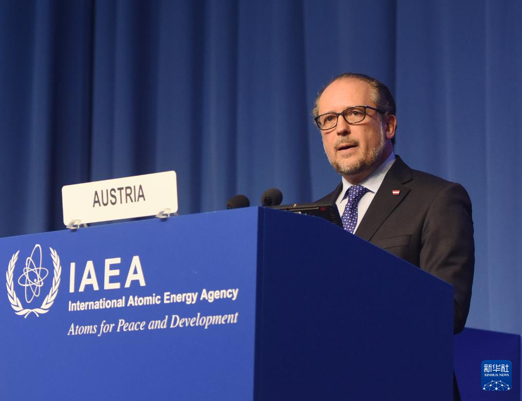 这是奥地利外长沙伦贝格在维也纳举行的国际原子能机构第67届大会上发言的资料照片(2023年9月25日摄)。新华社记者 贺灿铃 摄