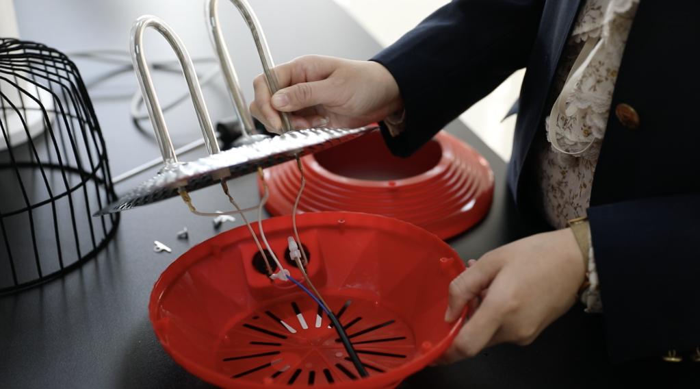 在对“鸟笼取暖器”进行拆解后,专家发现其三极插头与产品内部实际的电线不匹配——没有接地线,通电加热时有触电风险。