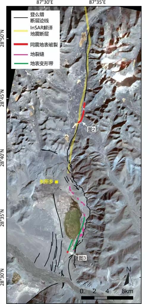 中国地震局地质研究所、四川省地震局联合调查团队1月9日在西藏日喀则定日县长所乡杂村南发现定日地震同震地表变形带,同震形变带延伸超过10千米。