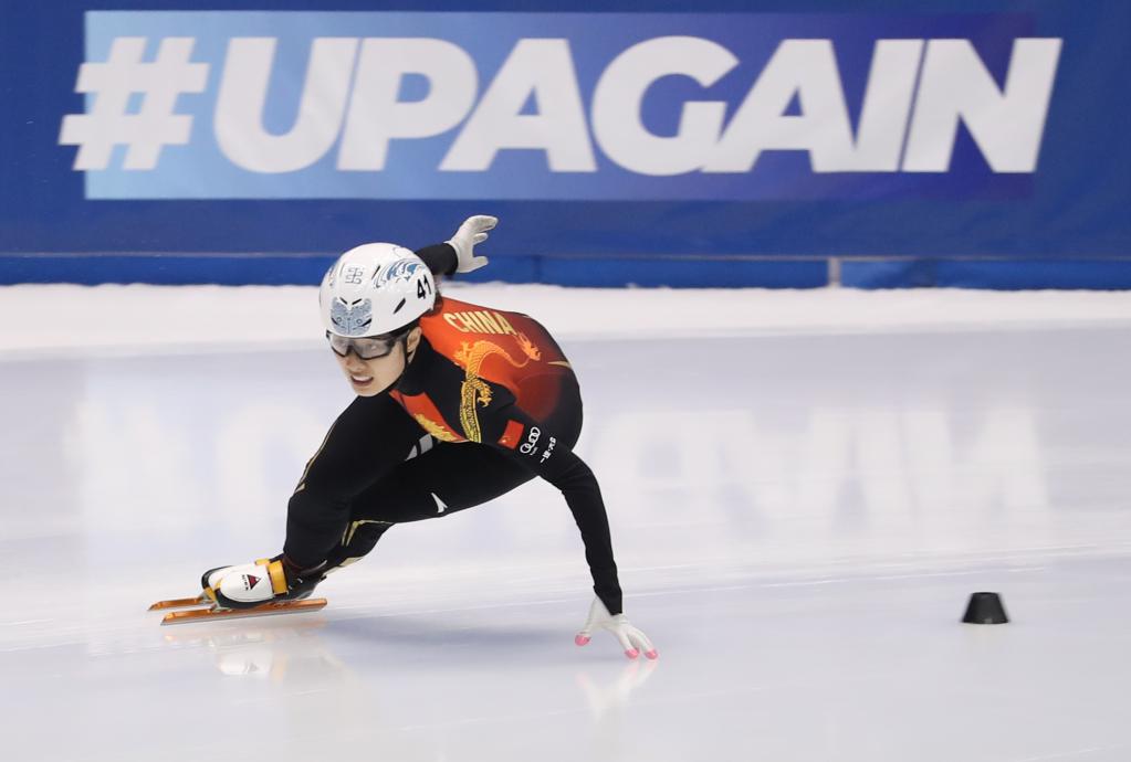 2021年10月30日,中国选手曲春雨在短道速滑世界杯名古屋站女子500米比赛中。新华社记者 杜潇逸 摄