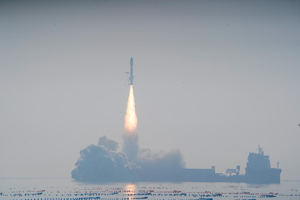 1月13日11时,我国太原卫星发射中心在山东海阳附近海域使用捷龙三号运载火箭,成功将微厘空间01组卫星发射升空,卫星顺利进入预定轨道,发射任务获得圆满成功。新华社发(徐亚靖 摄)