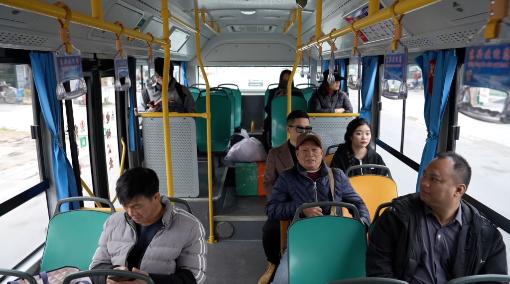 早上8点多,在东兴市旅游集散中心门口,一辆张贴着中越两种语言标识的公交车格外引人注目,乘客正排队登上这辆跨国公交。售票员一一检查乘客的证件,有的是护照,有的是边民证。