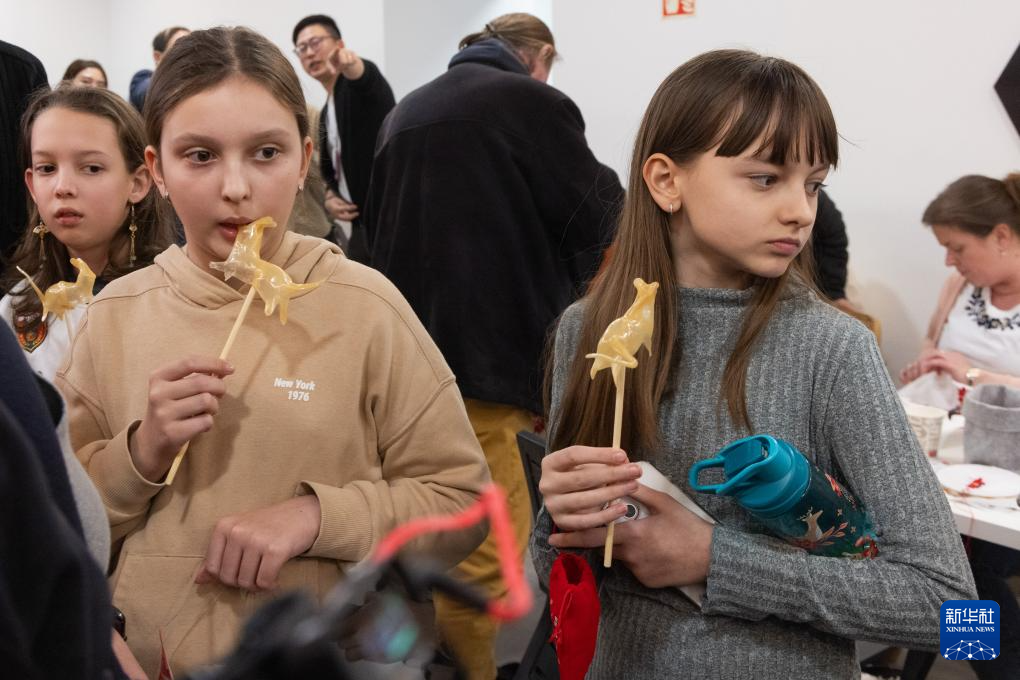 1月17日,在匈牙利布达佩斯,孩子们在“指尖上的非遗——中国文化体验日”为主题的2025“欢乐春节”活动上手举糖人。新华社发(弗尔季·奥蒂洛摄)
