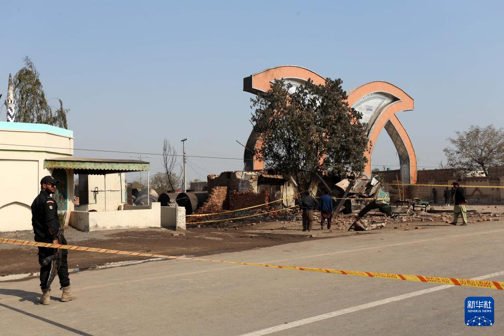 1月27日,在巴基斯坦东部城市木尔坦,安全人员在事故现场附近设置警戒线。新华社发