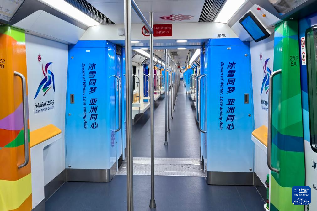 这是1月27日拍摄的哈尔滨地铁3号线“逐梦亚冬号”主题专列车厢内景观。新华社发