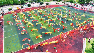 在当地一些学校,舞彩带龙成为“特色”课间操。