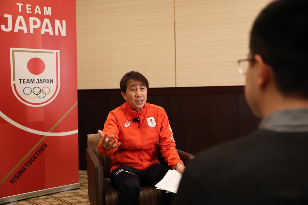 2月4日,日本体育代表团团长原田雅彦接受新华社记者采访。新华社记者 贾浩成 摄